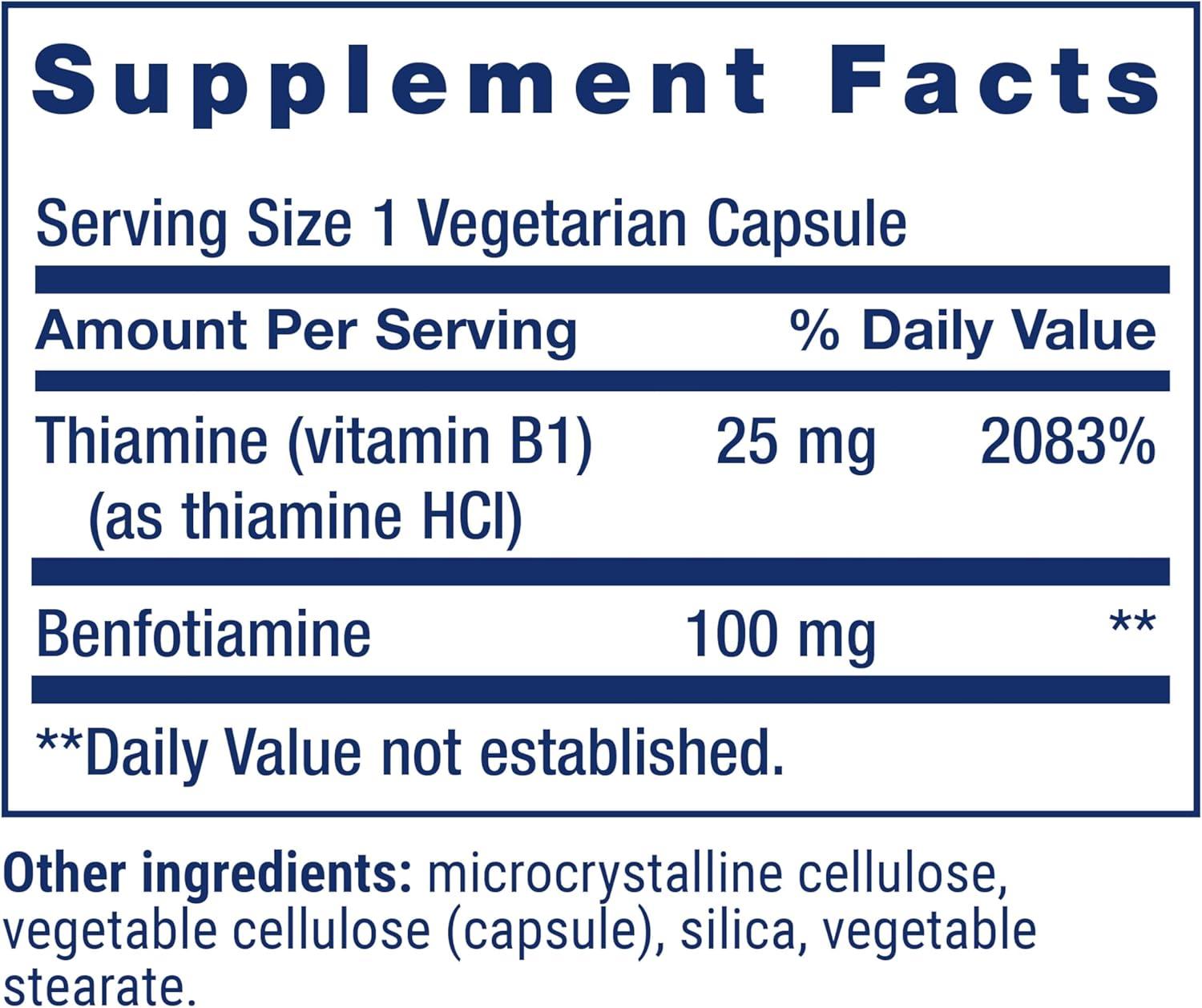 Life Extension Benfotiamine with Thiamine, Healthy Blood Sugar Metabolism Support, 100 mg benfotiamine, Cardiovascular Health, Brain Health, Non-GMO, Gluten-Free, 120 Vegetarian Capsules(120 Count (Pack of 1))