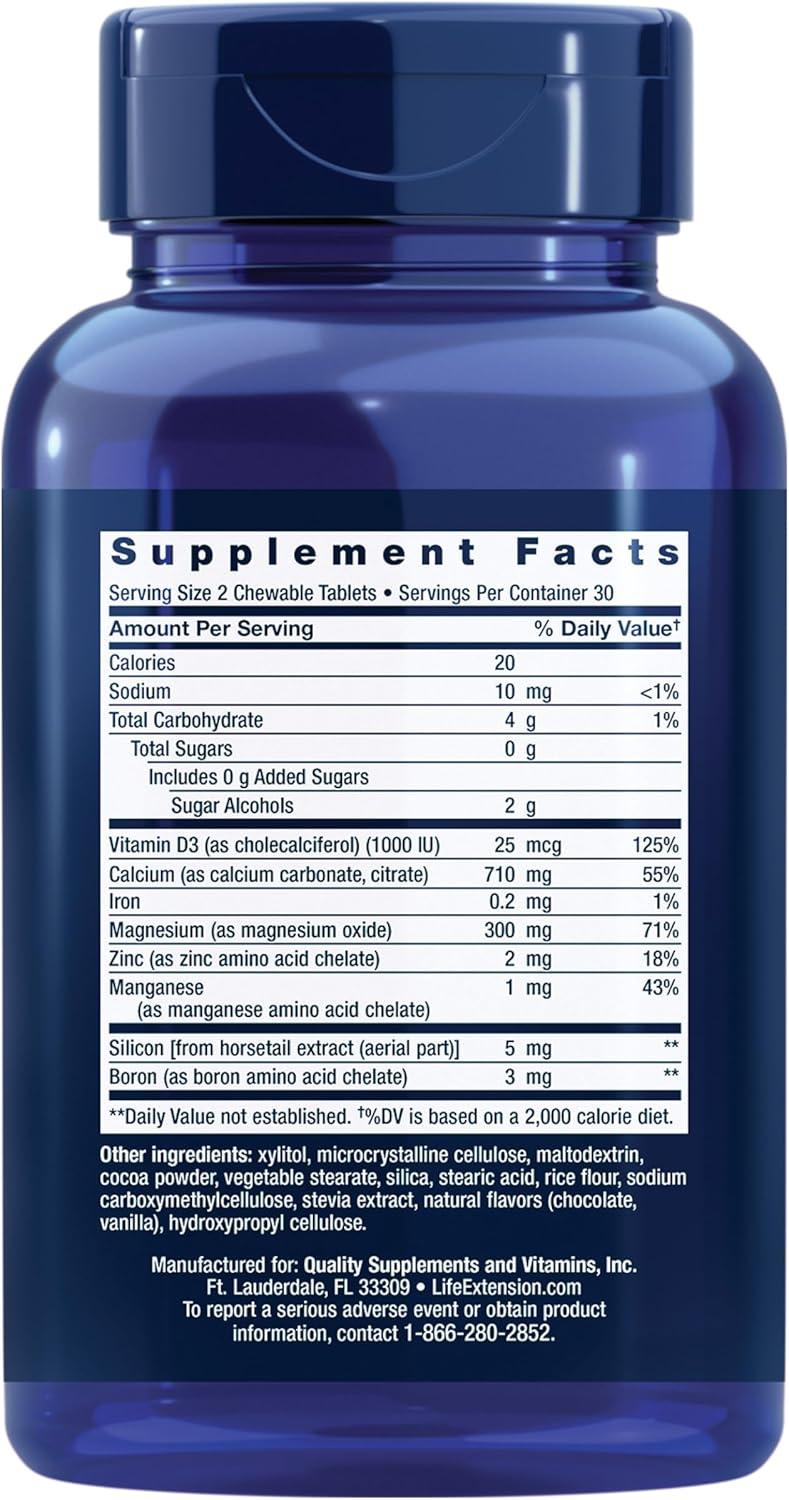 Life Extension Bone Restore Calcium Supplement Chewable Tablets, Bone Health Supplement, Calcium, Vitamin D, Minerals, Gluten Free, Non-GMO, 60 Tablets