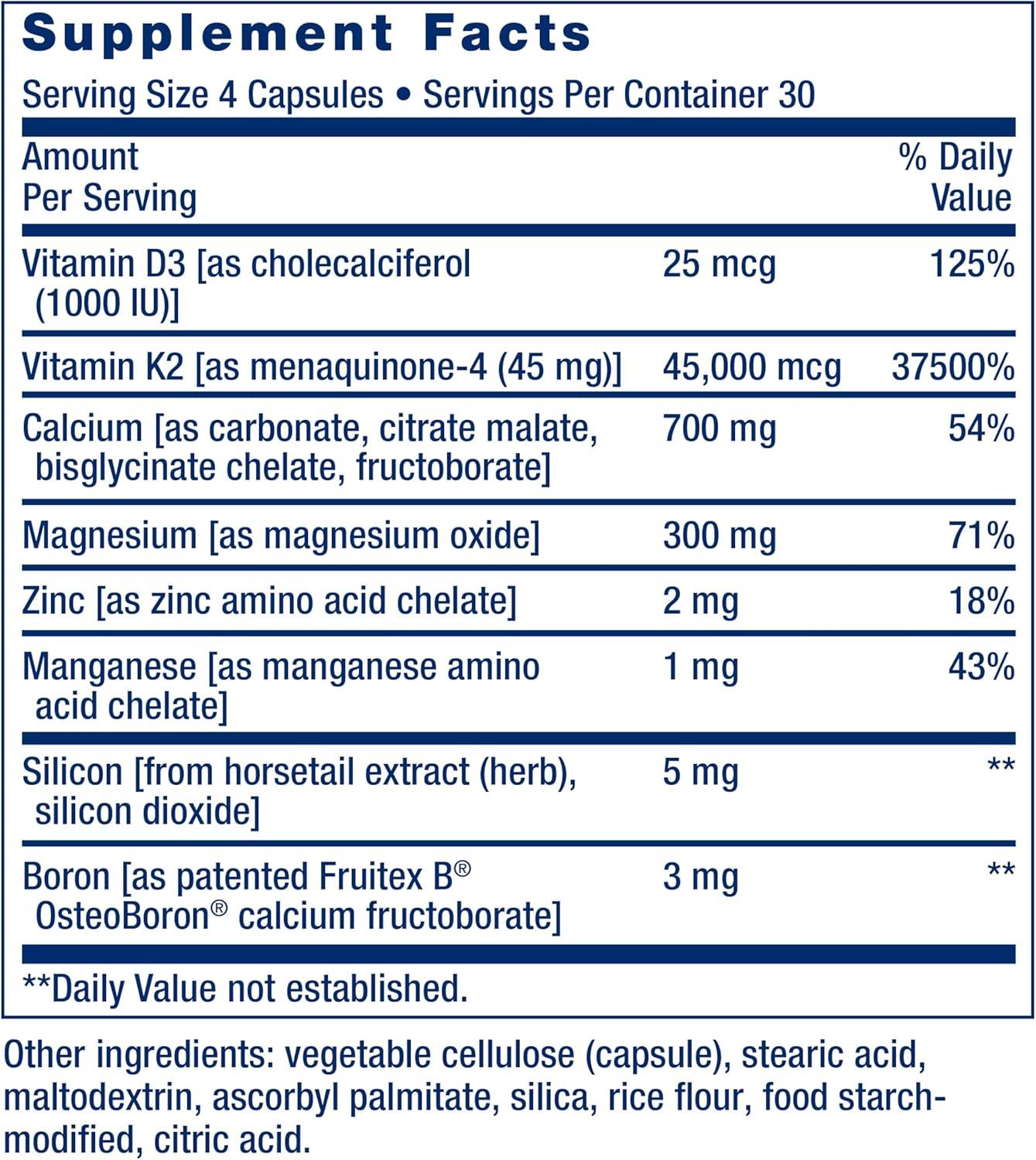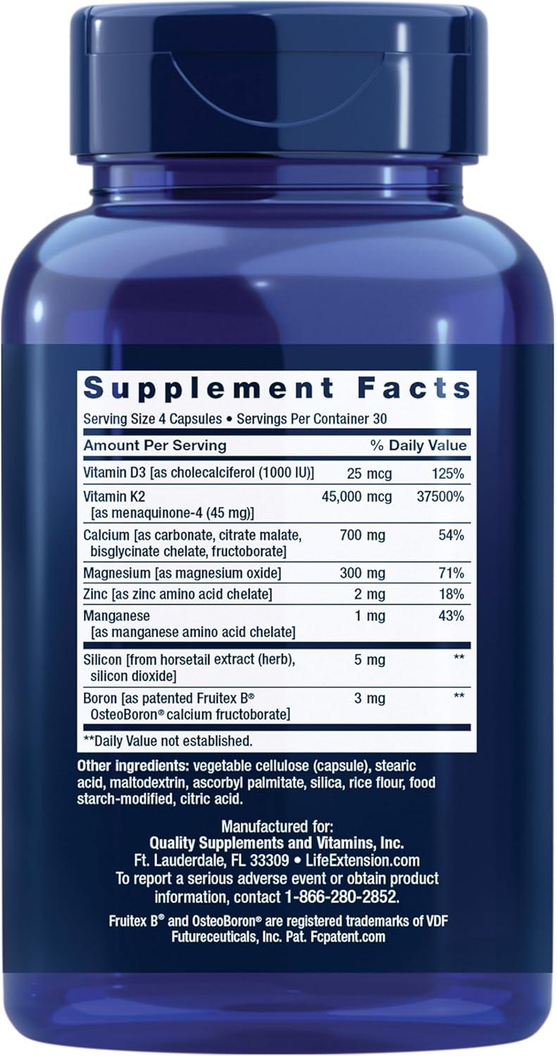 Life Extension Bone Restore with Vitamin K2 – Bone Health Supplement for Strong Bones – 3 Types of Absorbable Calcium, Vitamins D3 and K2, Minerals – Gluten-Free, Non-GMO – 120 Capsules