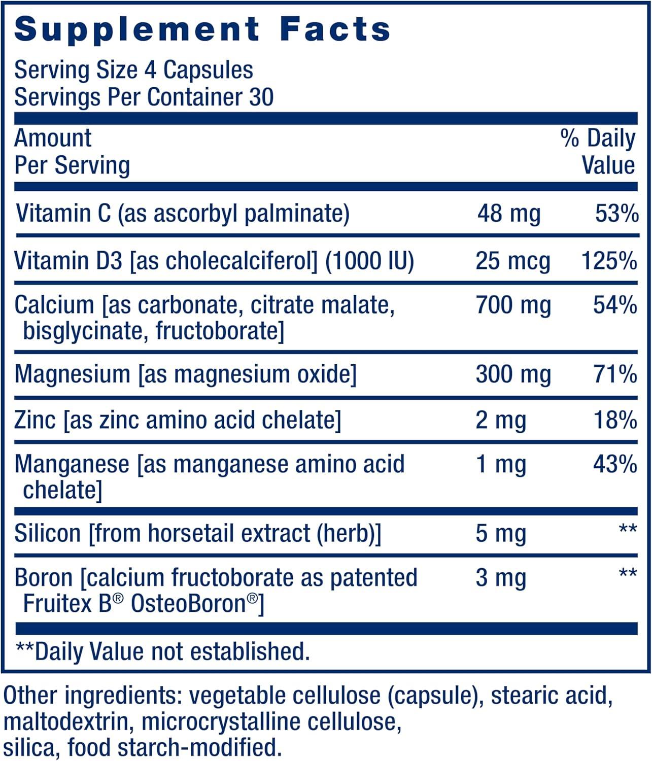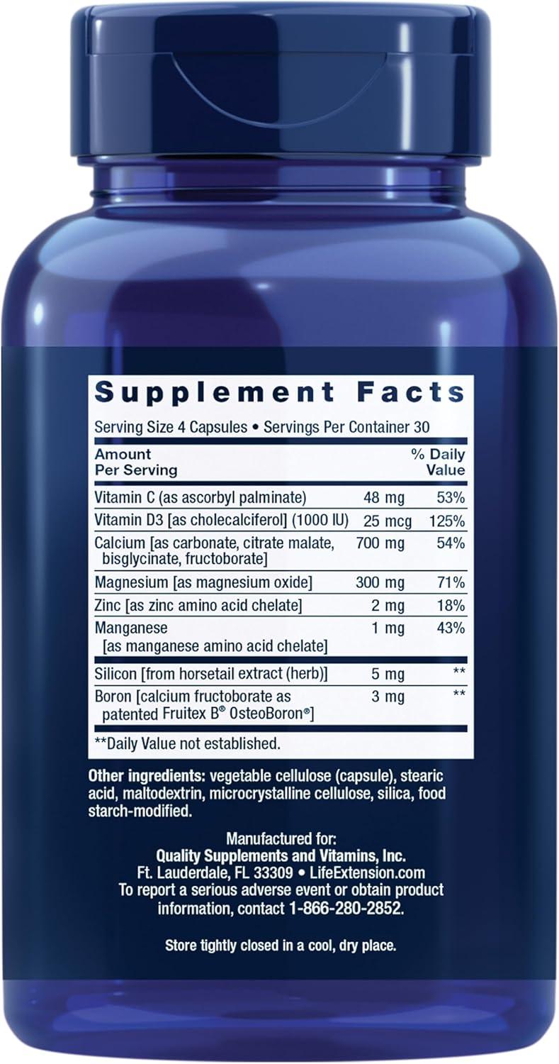 Life Extension Bone Restore Calcium Supplement, Vitamin D3, Magnesium, Boron, zinc, Manganese, Silicon, Helps Maintain Healthy Bone Density, Gluten-Free, Non-GMO, 120 Capsules