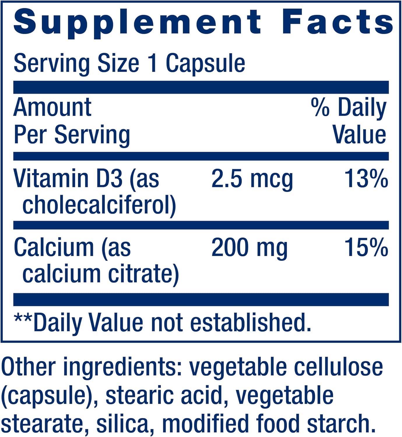 Life Extension Calcium Citrate with Vitamin D, Super-absorbable Calcium to Support Optimal Bone Health, Gluten-Free, Non-GMO, 200 Capsules