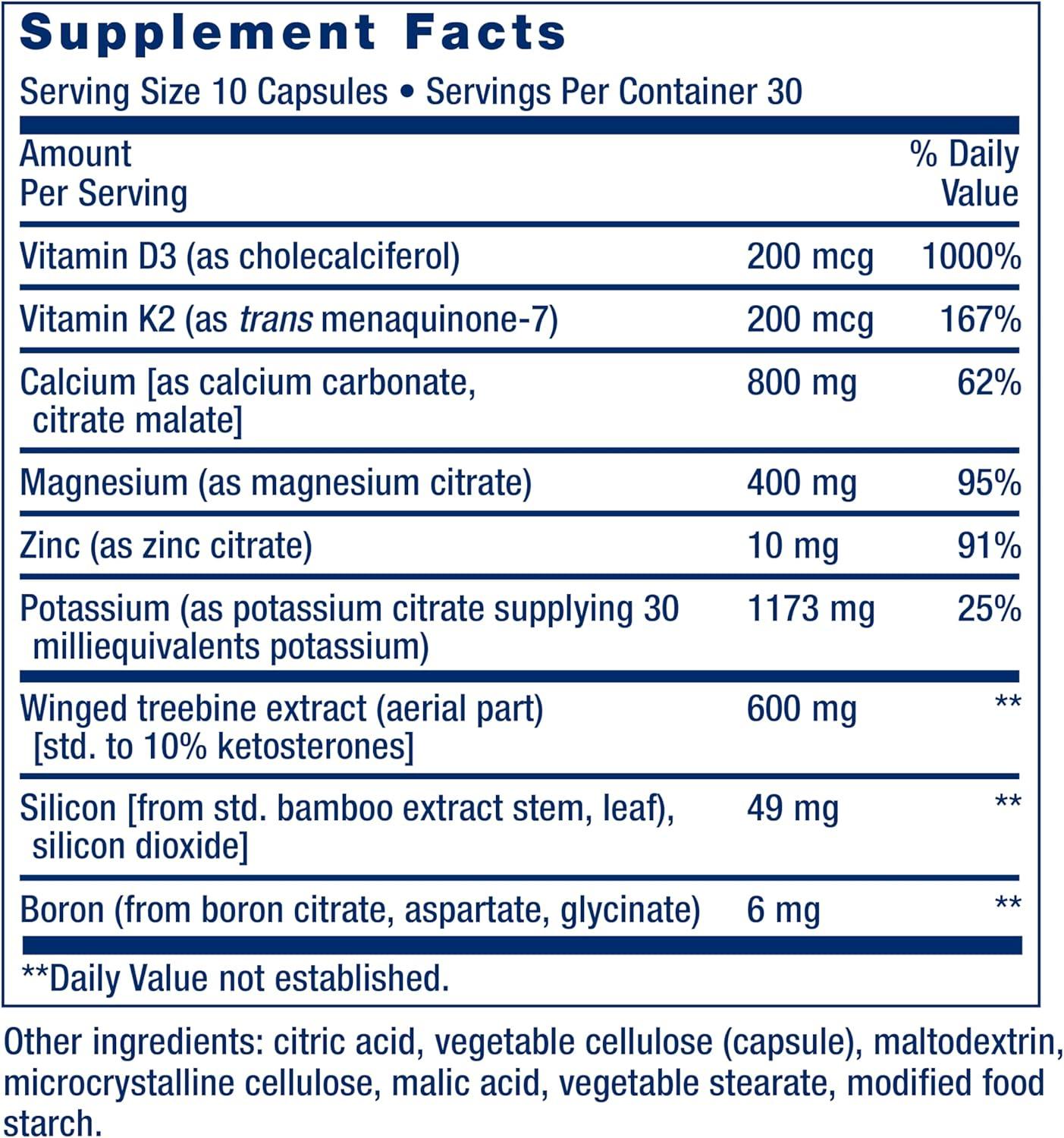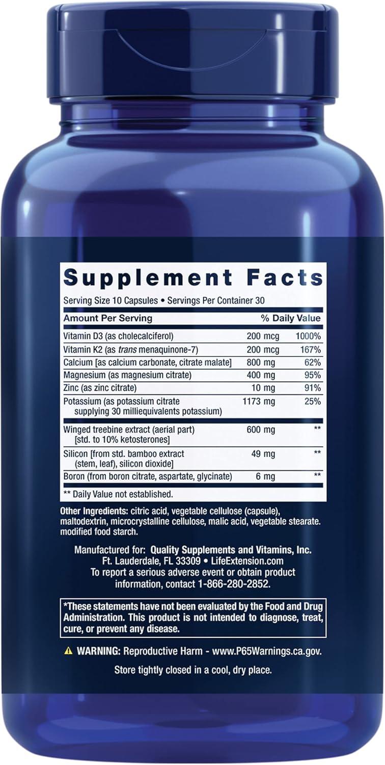 Life Extension Dr. Strum’s Intensive Bone Formula, Cissus quadrangularis, Calcium, Vitamin D3, K2, Magnesium, zinc, Potassium, Boron, Bone Health Support Formula, Gluten Free, Non-GMO, 300 Capsules