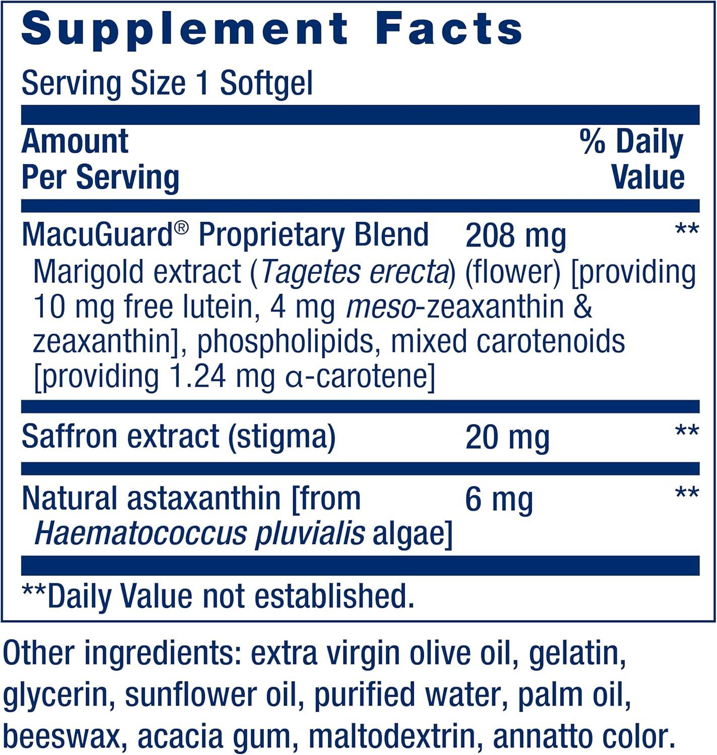 Life Extension MacuGuard Ocular Support with Saffron & Astaxanthin – Eye Health Supplement for Healthy Vision – with Lutein, zeaxanthin, Meso-zeaxanthin – Gluten-Free, Non-GMO – 60 softgels(60 Count (Pack of 1))