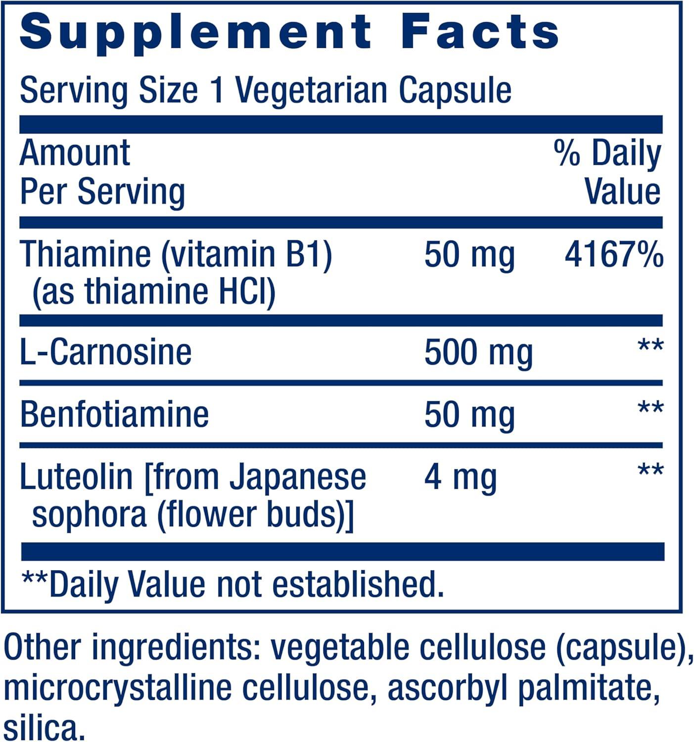 Life Extension Super Carnosine, L-carnosine, Luteolin, Vitamin B1, Muscle Support, Exercise Recovery, Heart Health, Gluten-Free, Non-GMO, Vegetarian, 60 Capsules