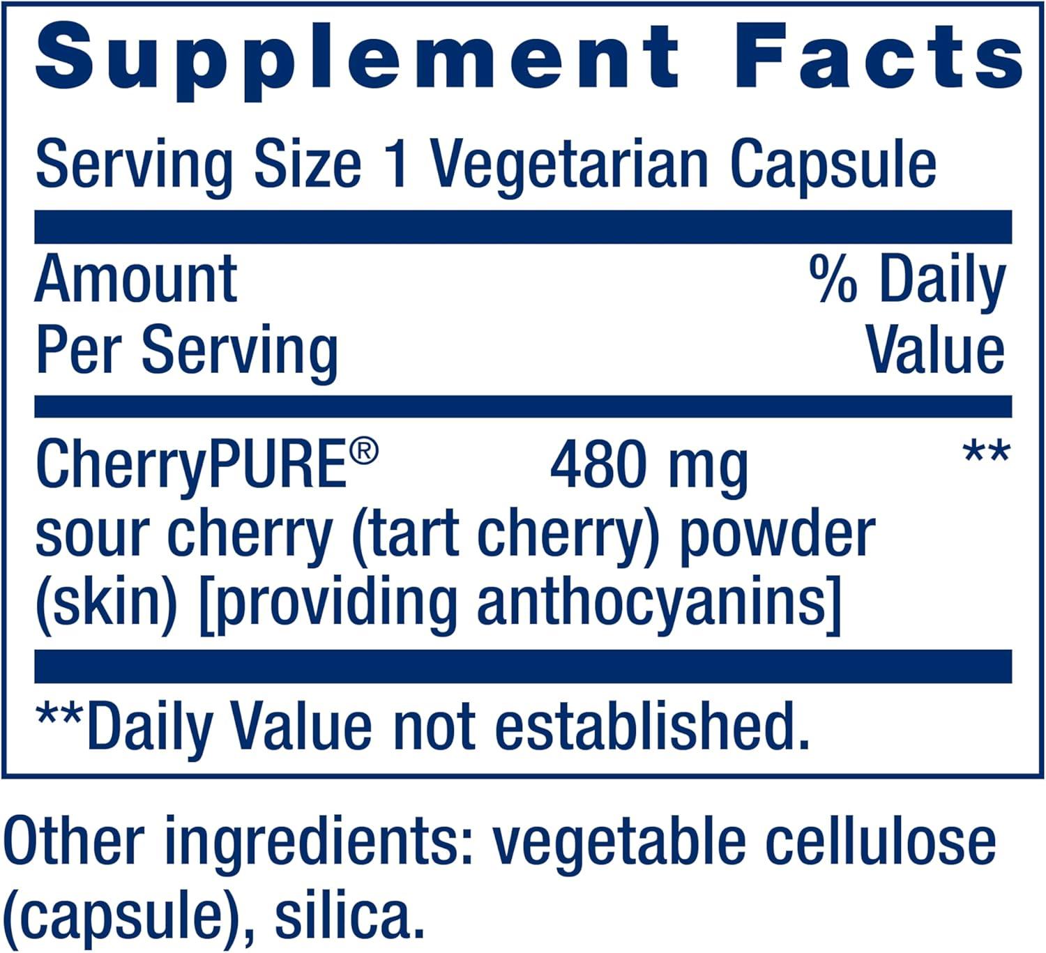 Life Extension Tart Cherry with CherryPURE®, anthocyanins, oxidative Stress, Muscle Recovery, Exercise Support, Muscle Comfort, Vegetarian, Gluten-Free, Non-GMO, 60 Capsules(Standard Packaging)