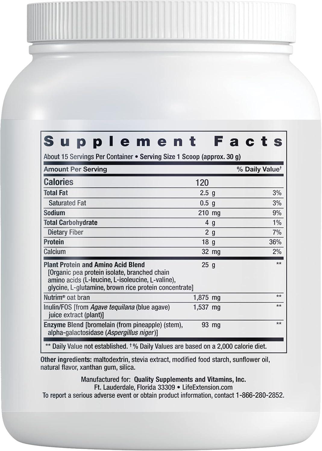 Life Extension Wellness Code® Plant Protein Complete & Amino Acid Complex (Vanilla), Plant-Based Protein Powder Plus branched-Chain Amino acids, Gluten-Free, Non-GMO, Vegetarian, 450 Grams