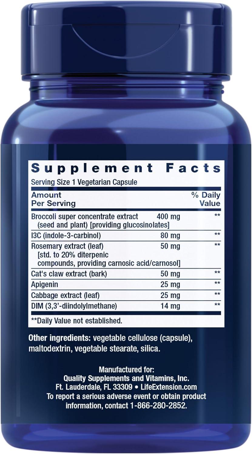 Life Extension Cruciferous Vegetable Extract Blend, Broccoli Extract, I3C, Helps Maintain DNA Health & Already Healthy Hormone Levels, Gluten Free, Non-GMO, Vegetarian, 60 Capsules(60 Count (Pack of 1))
