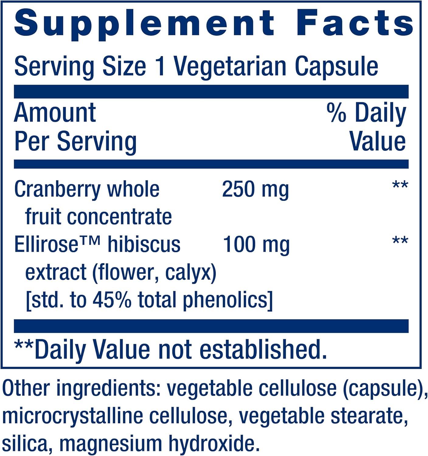 Life Extension Optimized Cran-Max®, Cranberry Whole Fruit Concentrate with Hibiscus Extract, Best in Class Support for Female Urinary Tract Health, Gluten-Free, Vegetarian, Non-GMO, 60 Capsules(Standard Packaging)
