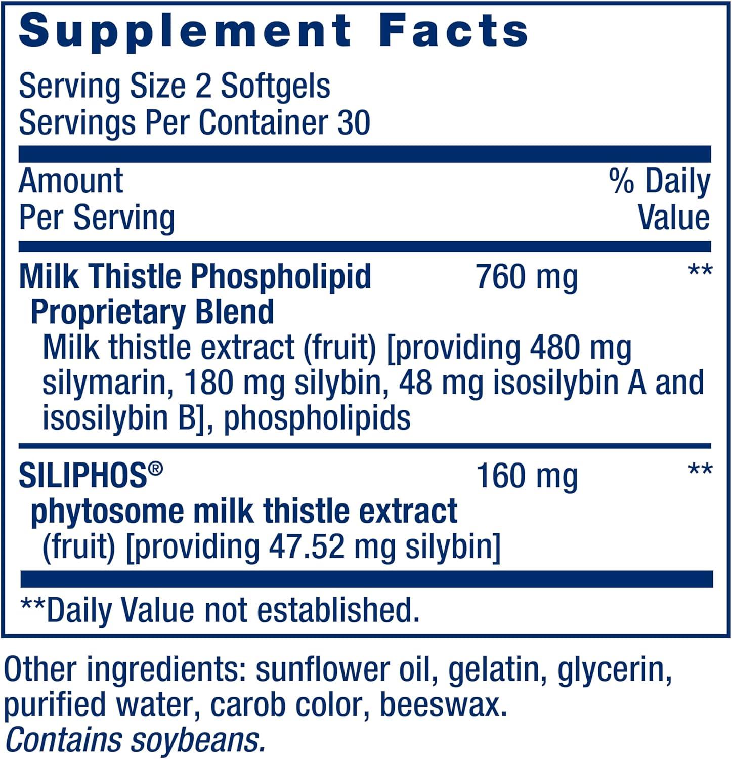 Life Extension Advanced Milk Thistle, silymarin, silybin, phospholipids, Promotes Healthy Liver Function, Gluten-Free, Non-GMO, 60 softgels
