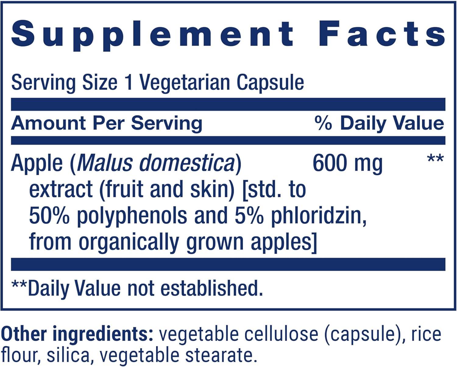 Life Extension AppleWise, Apple polyphenol Extract for Heart, Cellular and Colon Health, Gluten Free, Non-GMO, Vegetarian, 30 Capsules