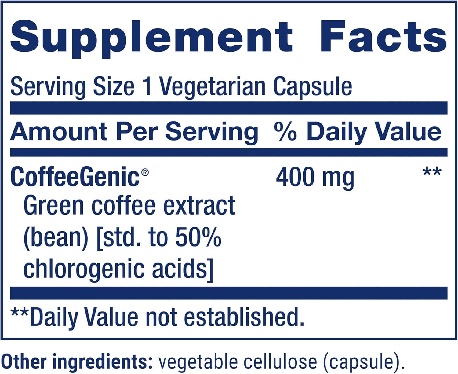 Life Extension CoffeeGenic® Green Coffee Extract, 400 mg, standardized for 50% chlorogenic Acid, After-Meal Metabolism Support, Gluten Free, Non-GMO, Vegetarian, 90 Capsules
