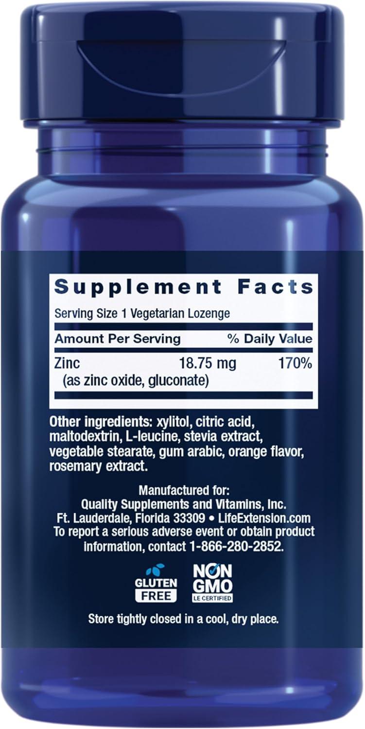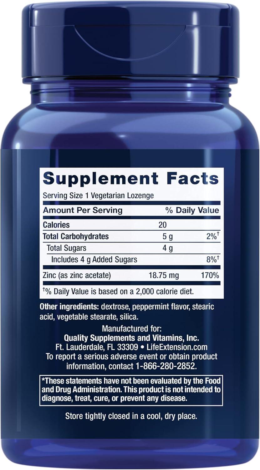 Life Extension Enhanced Zinc Lozenges, zinc Acetate, Optimal Immune Support, Strong Immune Response, Ionic zinc, Non-GMO, Gluten-Free, Vegetarian, 30 lozenges