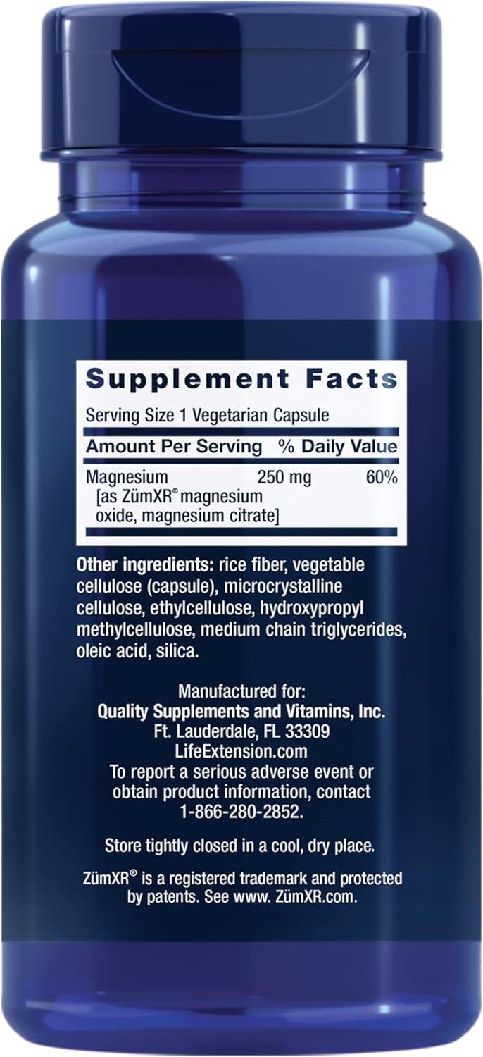 Life Extension Extend-Release Magnesium, prolonged Heart & Bone Health Support, Cardiovascular & Blood Pressure Health Support, bioavailable Formula, Gluten-Free, Non-GMO, Vegetarian, 60 Capsules(Unflavored (Magnesium Only))