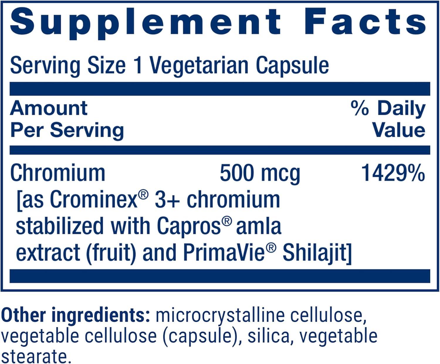 Life Extension Optimized Chromium with Crominex 3+ 500 mcg, Metabolism Health, Healthy Balance, Vegetarian, Gluten Free, Non-GMO, 500 mcg, 60 Vegetarian Capsules