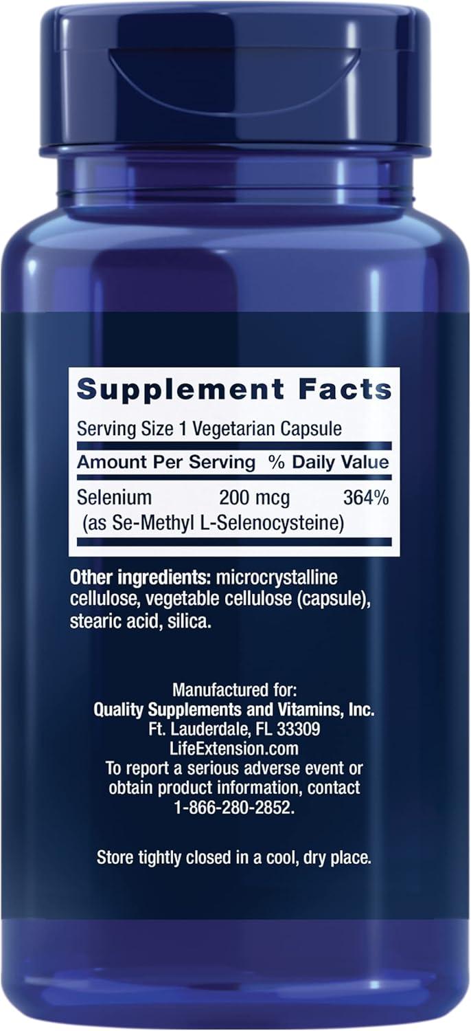 Life Extension Se-Methyl L-Selenocysteine, Advanced Form of Selenium, antioxidant Defense, Cellular Health, Healthy Aging, Vegetarian, Gluten-Free, Non-GMO, 90 Capsules