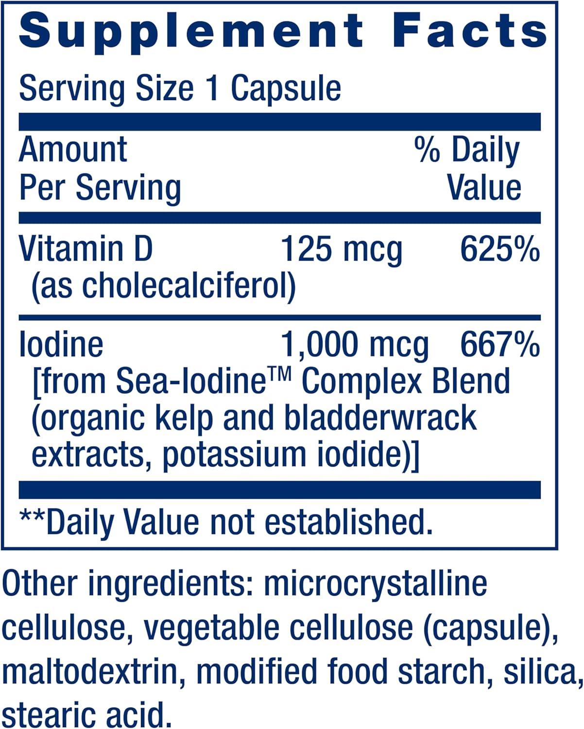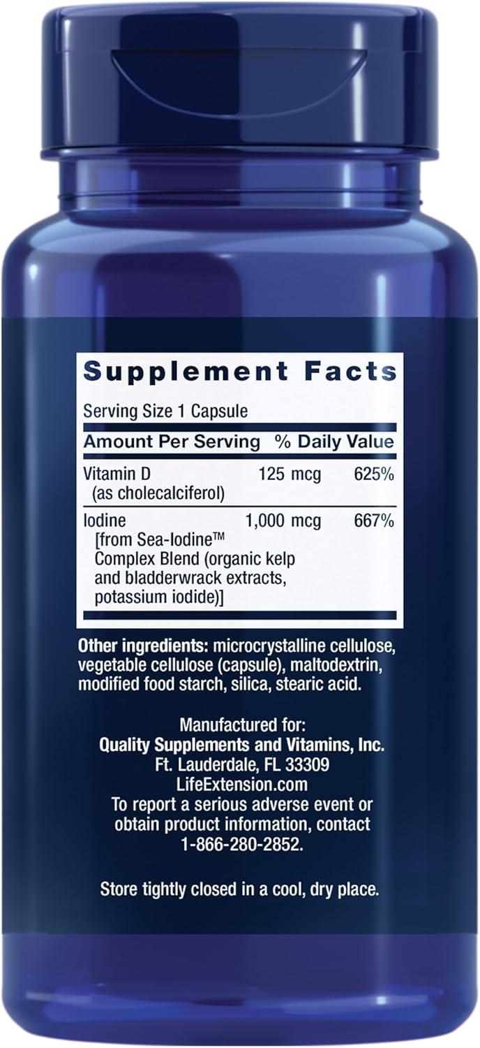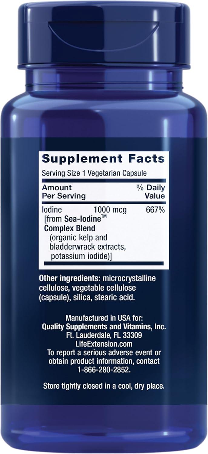 Life Extension Sea-Iodine™, kelp and bladderwrack-derived Iodine, Supports Healthy Levels of This Essential Nutrient for Thyroid Health and Beyond, Non-GMO, Gluten-Free, Vegetarian, 60 Capsules