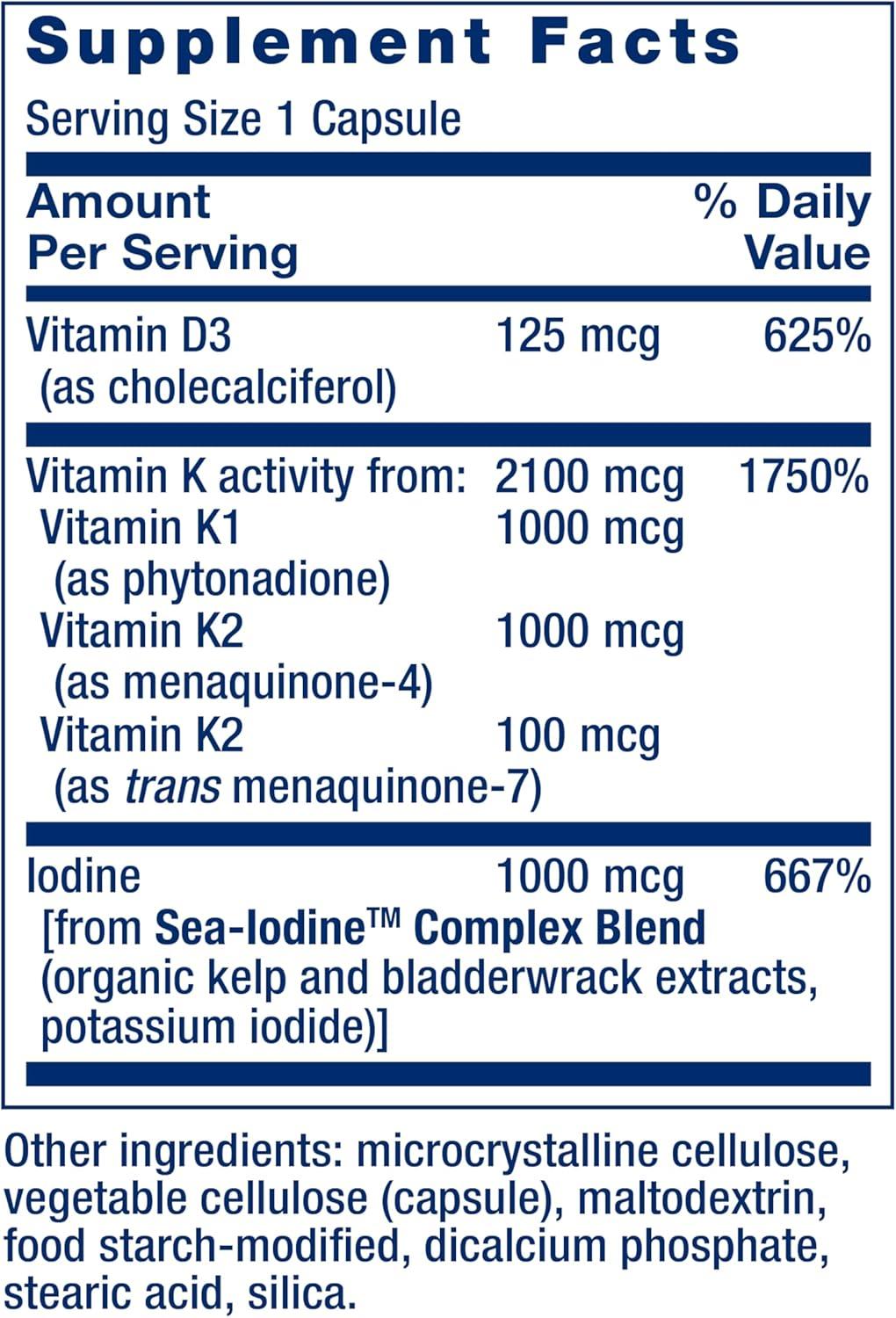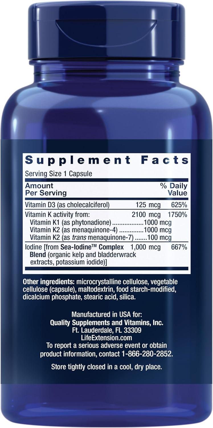 Life Extension Vitamins D and K with SeaIodine Bone Brain Thyroid Arterial Support Non GMO Once Daily Gluten Free, 60 Count(60 Count (Pack of 1))