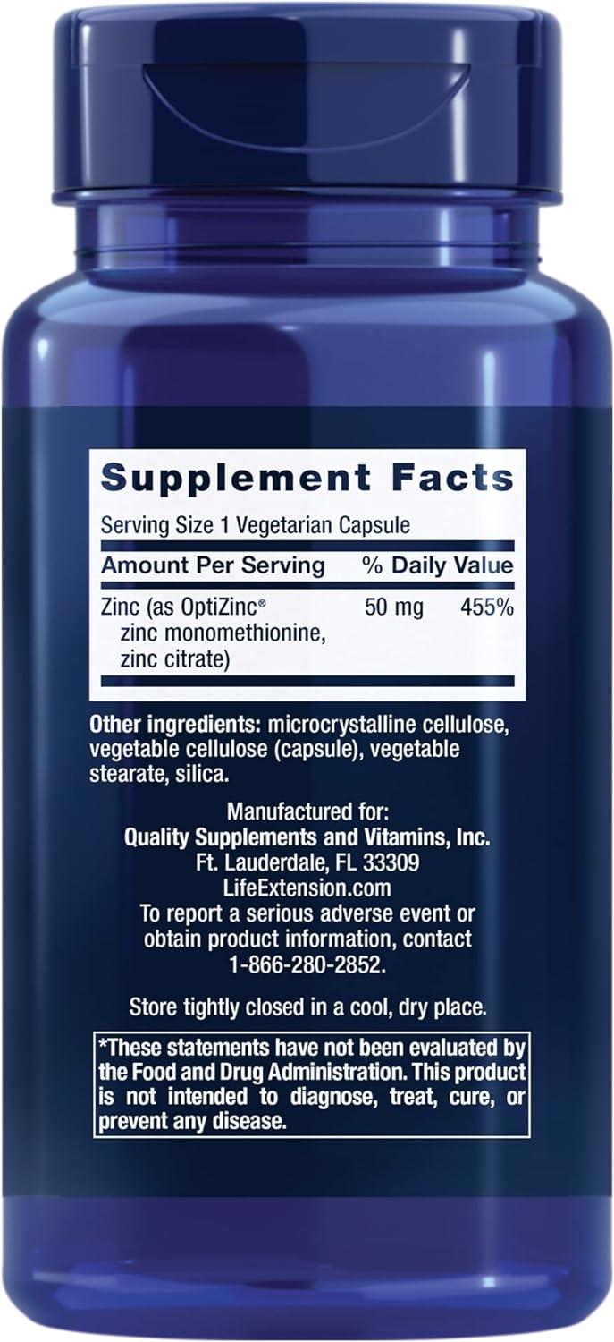 Life Extension Zinc Caps, zinc 50 mg, zinc Citrate, Support The Body’s Immune defenses, Ultra-absorbable, Vegetarian, Non-GMO, Gluten-Free, 90 Vegetarian Capsules(Caps)