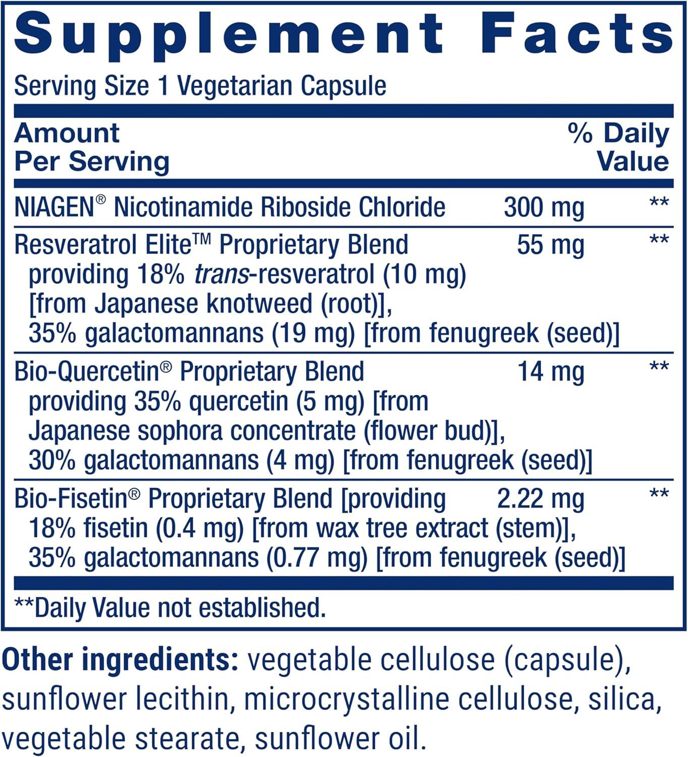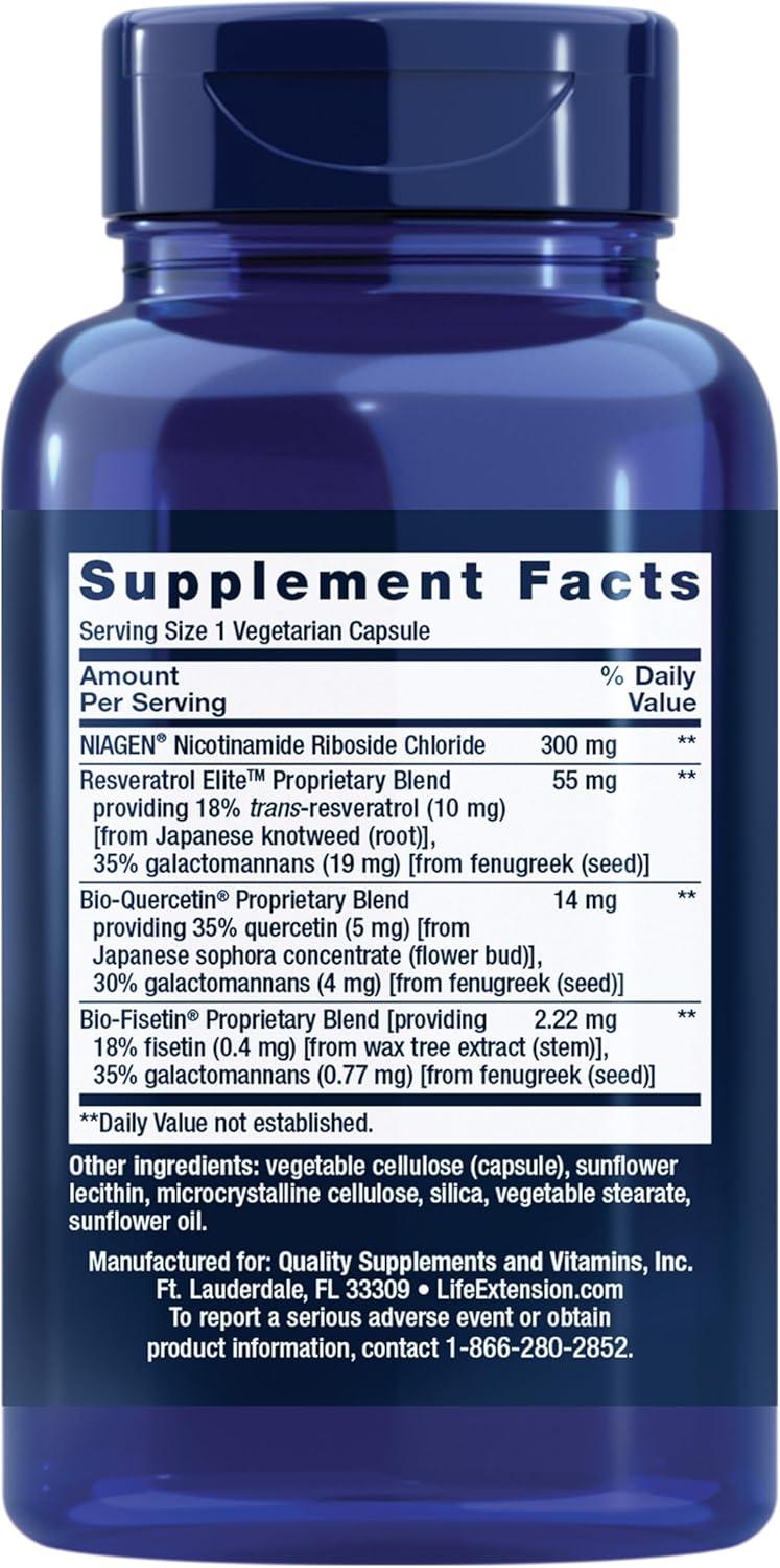 Life Extension NAD+ Cell Regenerator™ and Resveratrol Elite™*, nicotinamide riboside, Trans-resveratrol, quercetin, Fisetin, Heart Health, Healthy Aging, Vegetarian, Non-GMO, Gluten Free, 30 Capsules(30 Count (Pack of 1))