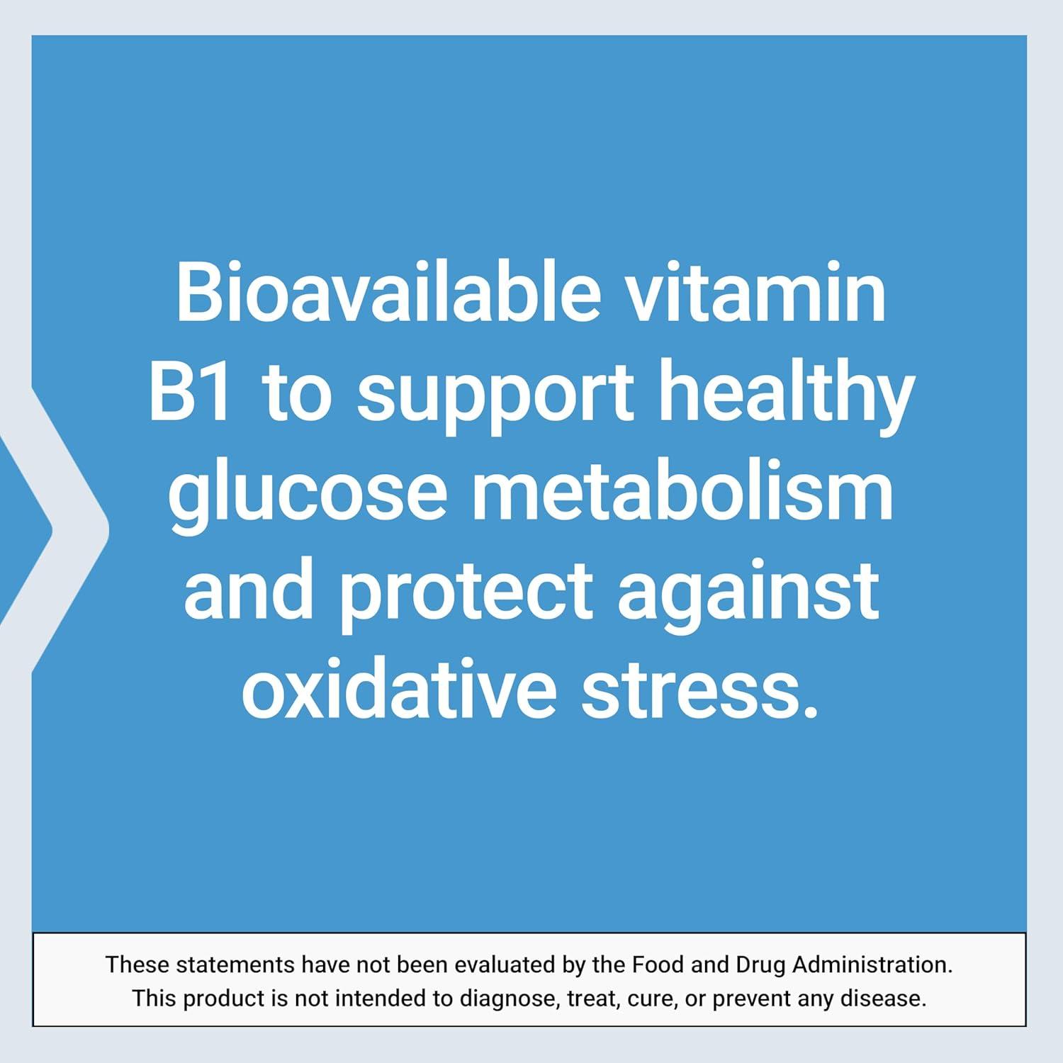 Bioavailable vitamin B1 – Thiamine is vitamin B1. Benfotiamine is a fat-soluble form of vitamin B1, which makes it more bioavailable. Benfotiamine has been shown to support thiamine levels faster and longer than thiamine.