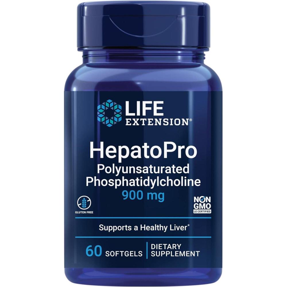 Life Extension HepatoPro, polyunsaturated phosphatidylcholine, 900 mg, Supports a Healthy Liver and detoxification, Protects Against oxidative Stress, Gluten-Free, Non-GMO, 60 softgels(Standard Packaging)