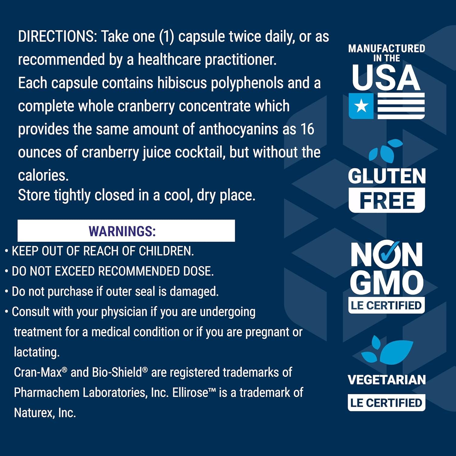 Life Extension Optimized Cran-Max®, Cranberry Whole Fruit Concentrate with Hibiscus Extract, Best in Class Support for Female Urinary Tract Health, Gluten-Free, Vegetarian, Non-GMO, 60 Capsules(Standard Packaging)