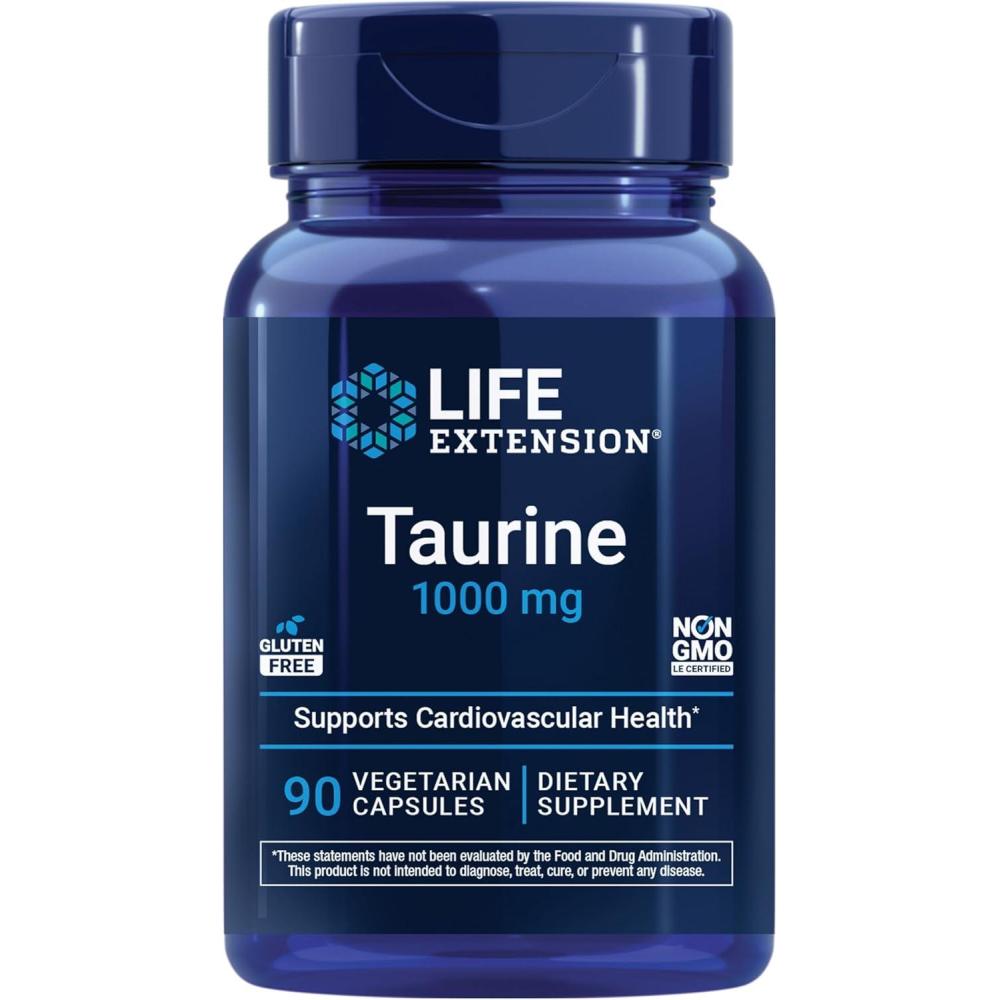 Life Extension Taurine, Pure Taurine Amino Acid Supplement, Heart, Liver and Brain Health, Longevity, Muscle and Exercise, 1000 mg dose, Non-GMO, Gluten-Free, Vegetarian, 90 Vegetarian Capsules(90 Count (Pack of 1))