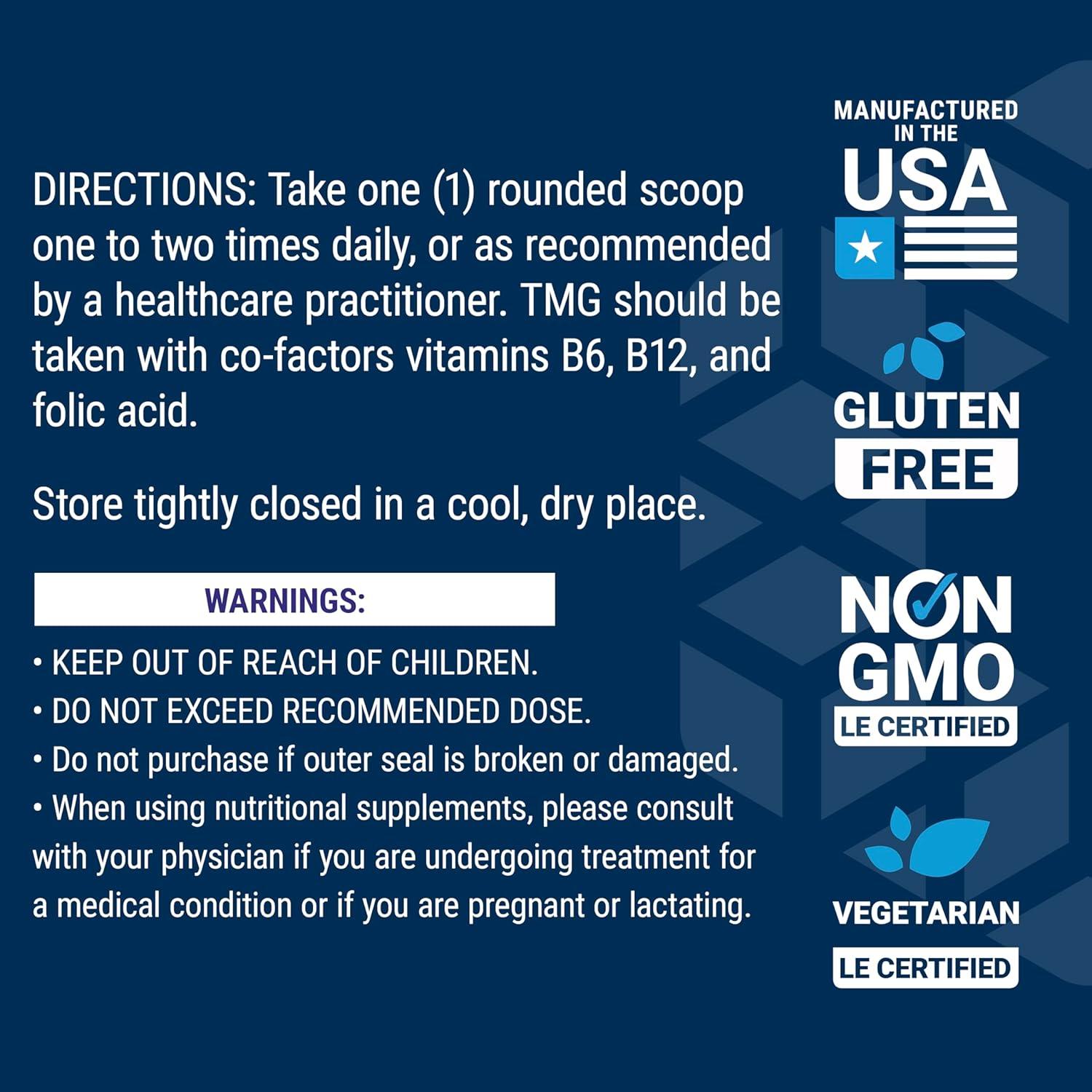 TMG for heart health – TMG supplements help maintain normal homocysteine levels—a key biomarker of cardiovascular health. TMG promotes a healthy inflammatory response and can help maintain already-healthy blood pressure.