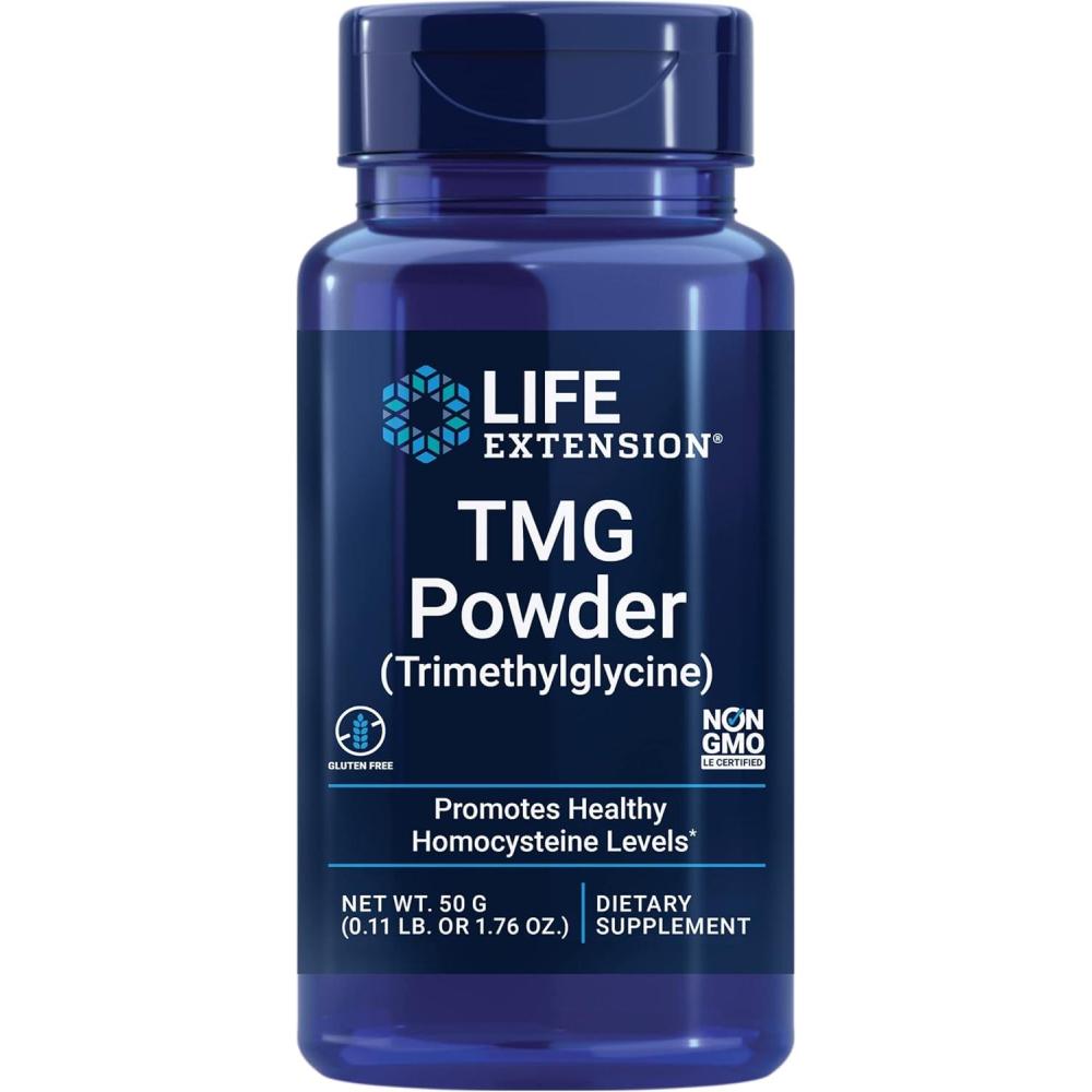 Life Extension TMG Powder – Trimethylglycine – Helps Maintain Normal Homocysteine Levels, Heart Health – Gluten-Free, Non-GMO, Vegetarian – Net Wt. 50 g (0.11 lb. or 1.76 oz.)