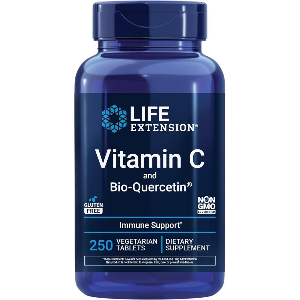Life Extension Vitamin C and Bio-Quercetin®, Cardiovascular Health Supplement, Immune Support, Highly absorbable, quercetin, Vitamin C, Gluten Free, Non-GMO, Vegetarian, 250 Tablets(250 Count (Pack of 1))