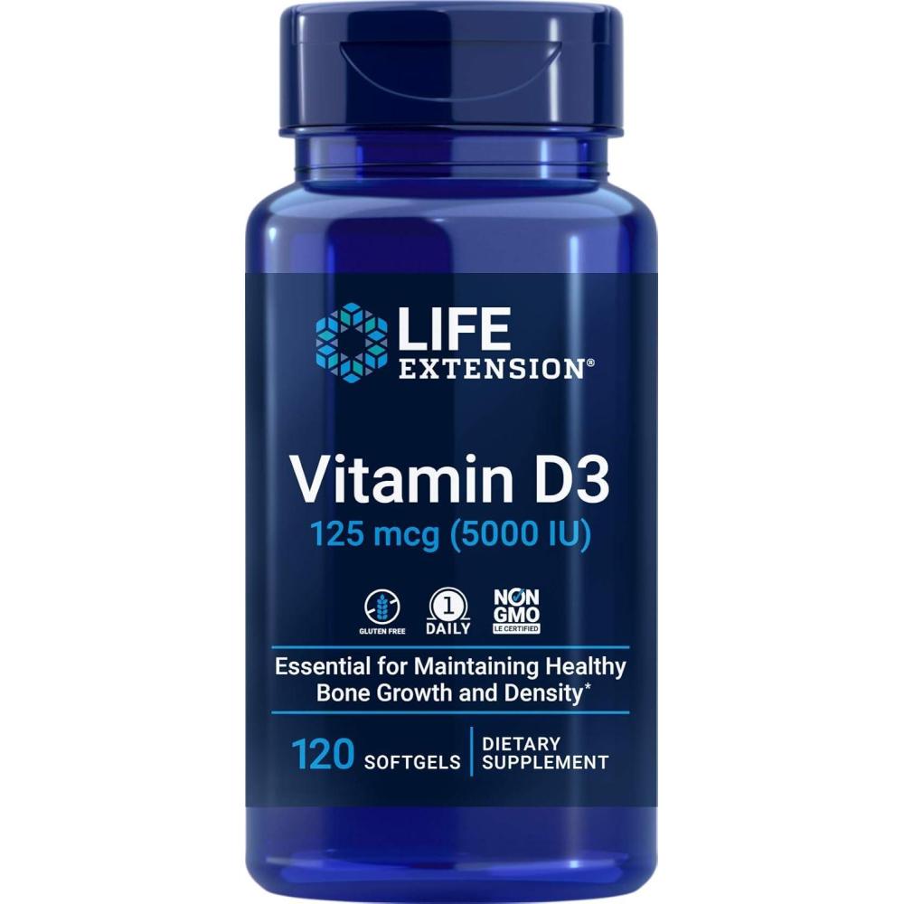 Life Extension Vitamin D3 5000 IU, 120 Softgels, 125mcg(120 Count (Pack of 1))