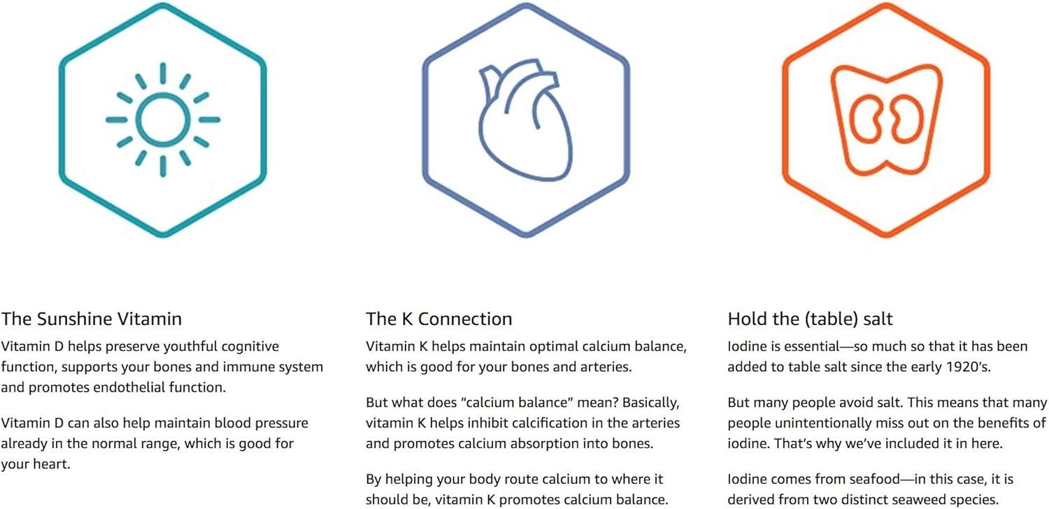 This formula delivers 125 mcg (5,000 IU) of vitamin D3, 1,000 mcg of Vitamin K1 (as phytonadione), 1,000 mcg of Vitamin K2 (as menaquinone-4), 100 mcg of Vitamin K2 (as trans menaquinone-7), and 1000 mcg of iodine in a convenient, once-daily supplement.